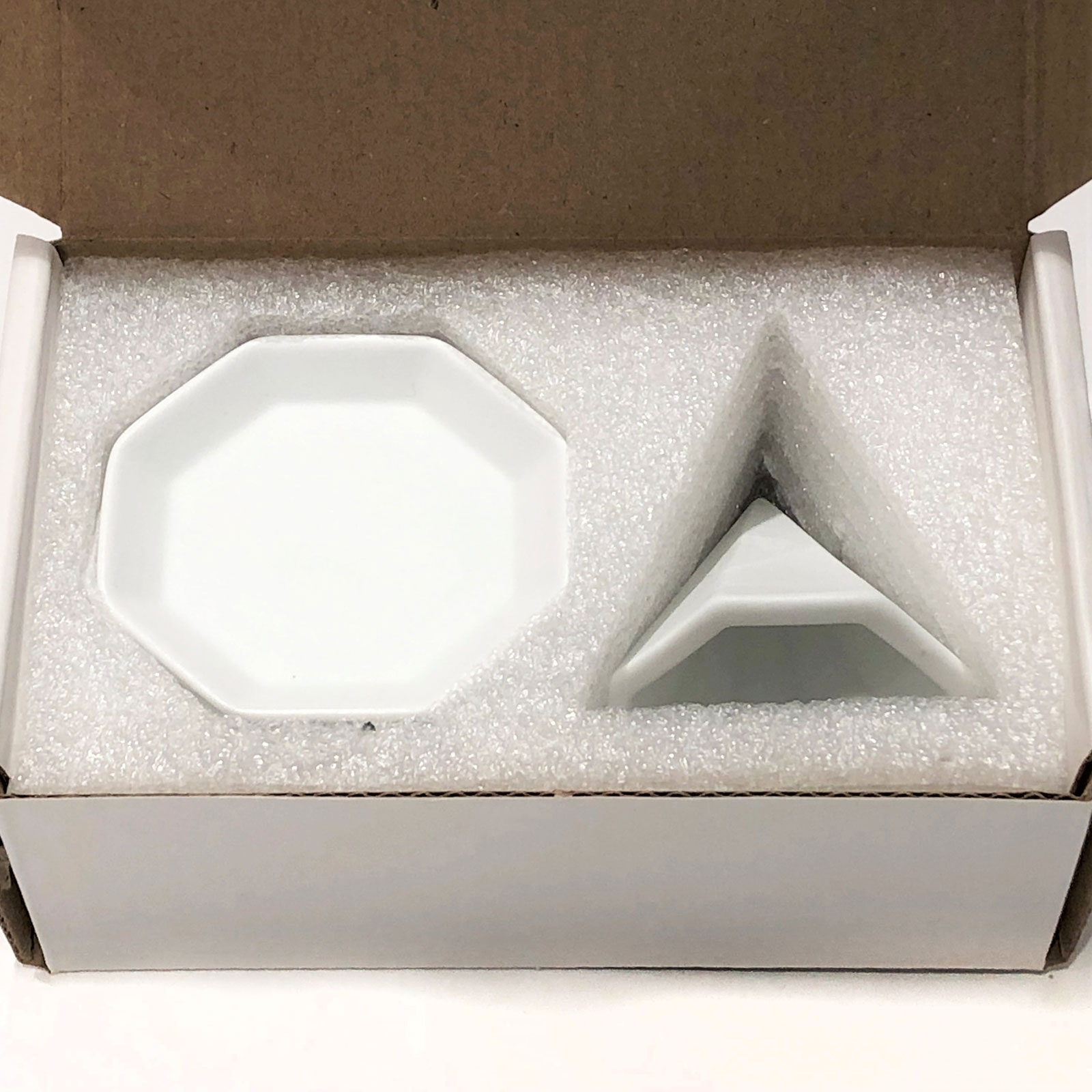 素焼きの八角皿と盛り塩器が粗塩に含まれる水分を吸収し、美しい形の盛り塩を作ることができます。